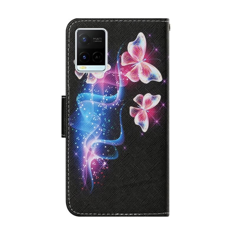 Θήκη τηλεφώνου από δέρμα με έγχρωμο σχέδιο για vivo Y21 (Τρεις φθορίζουσες πεταλούδες)