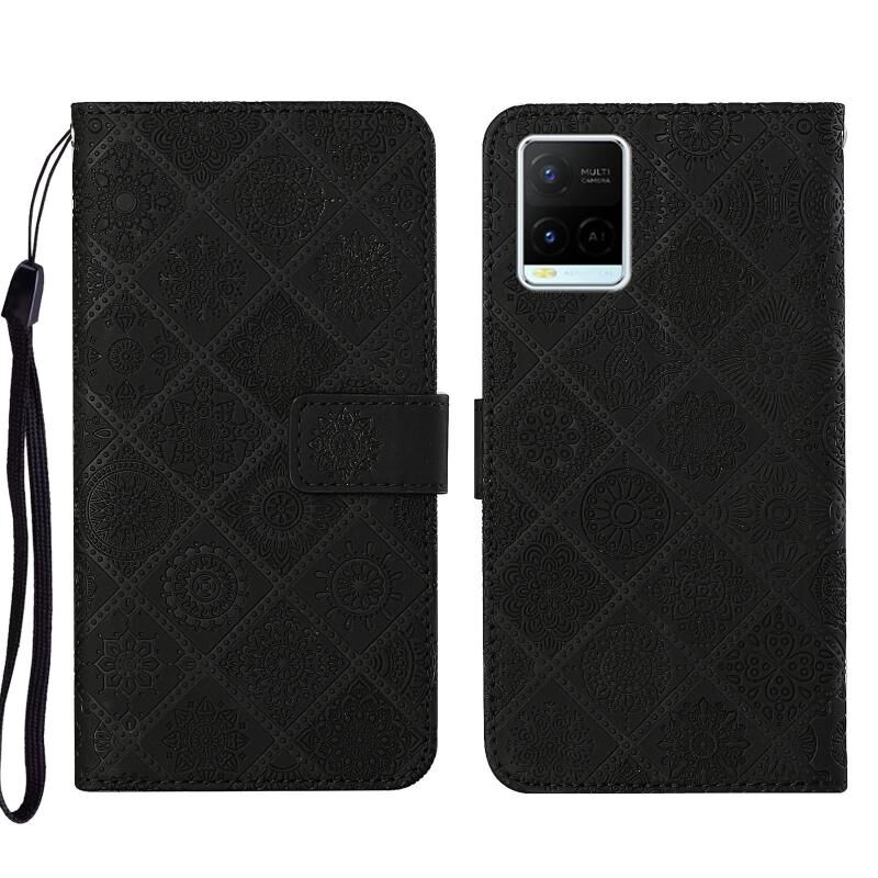 Για vivo Y21 Ethnic Style ανάγλυφο μοτίβο δερμάτινη θήκη τηλεφώνου (Μαύρο)