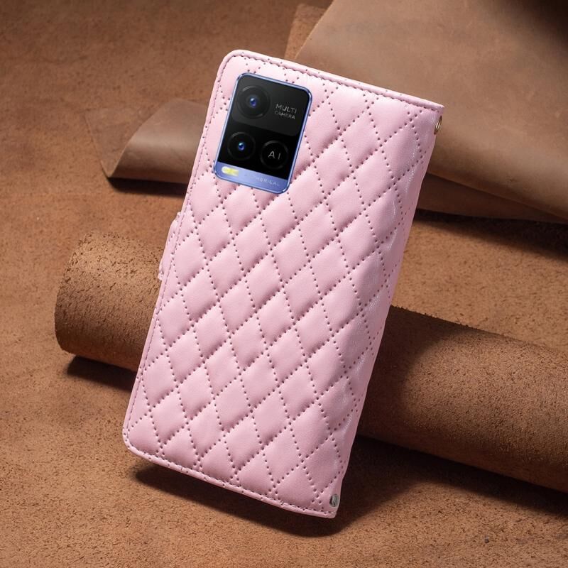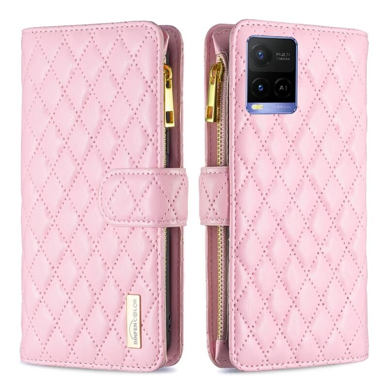 Για vivo Y21 / Y17 / Y21s Diamond Lattice φερμουάρ πορτοφόλι δέρμα Flip υπόθεση τηλεφώνου (ροζ)