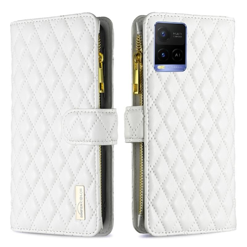 Για vivo Y21 / Y17 / Y21s Diamond Lattice φερμουάρ πορτοφόλι δέρμα Flip υπόθεση τηλεφώνου (λευκό)