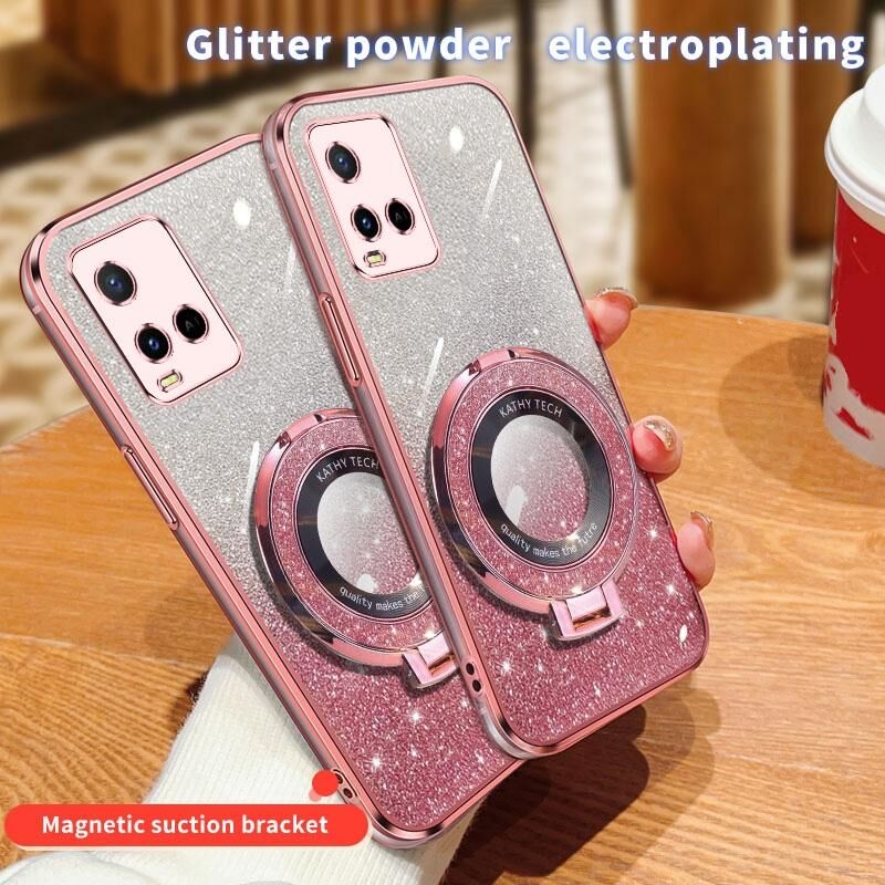 Θήκη κινητού τηλεφώνου TPU με στρογγυλό στήριγμα, επιμετάλλωση διαβαθμισμένης λάμψης για vivo Y21 / Y21s (Ροζ)