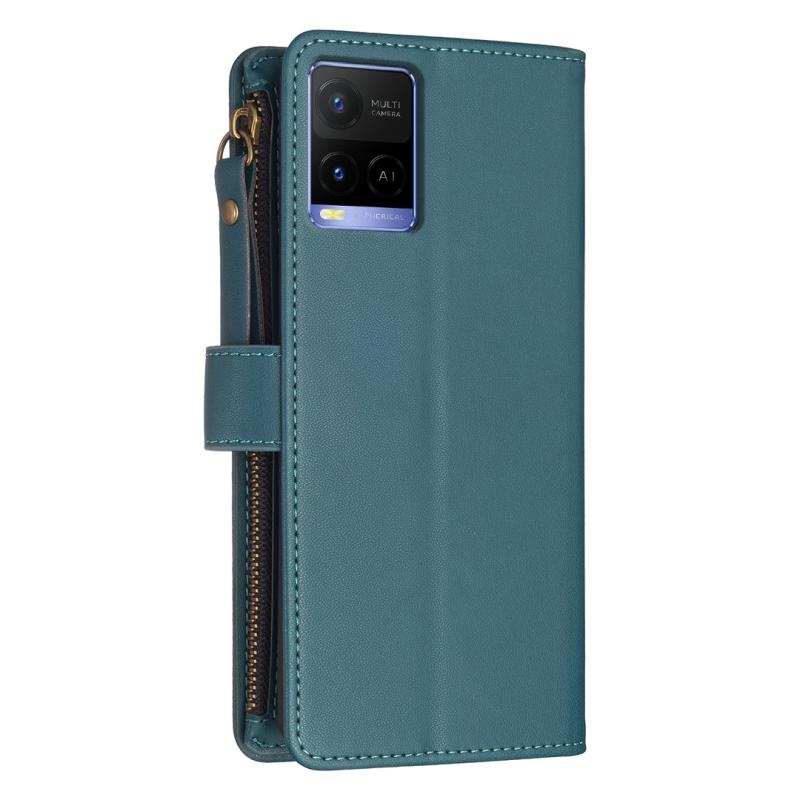 Για vivo Y21 / Y21s / Y33s Θήκη τηλεφώνου με δέρμα που αναδιπλώνεται, με φερμουάρ και 9 θήκες για κάρτες (πράσινο)