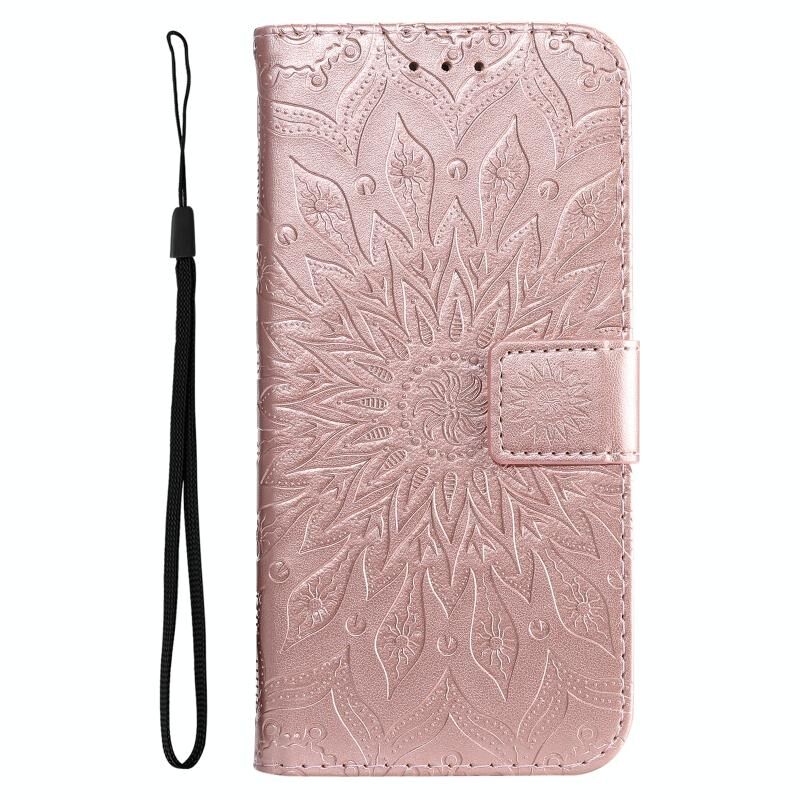 Για vivo Y21/Y21s/Y33s Πιεσμένη εκτύπωση ηλιοτρόπιο μοτίβο οριζόντια Flip PU δέρμα υπόθεση με κάτοχο & υποδοχές για κάρτες & πορτοφόλι & Lanyard (Ροζ χρυσός)