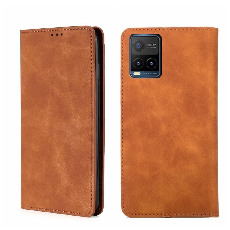 Για το vivo Y21/Y21s/Y33s Skin Feel Magnetic Horizontal Flip Leather Phone Case (Light Brown)