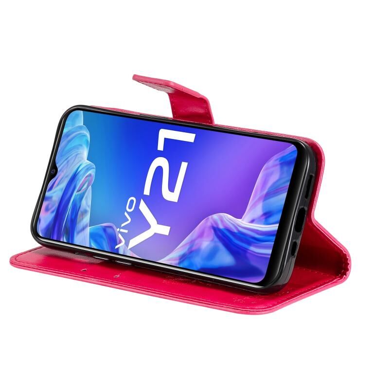 Για το vivo Y21/Y21s/Y33s Tree & Cat Embossing Pattern Horizontal Flip PU Leather Case με θήκη για κάρτες & υποδοχές για κάρτες & πορτοφόλι & κορδόνι (Rose Red)