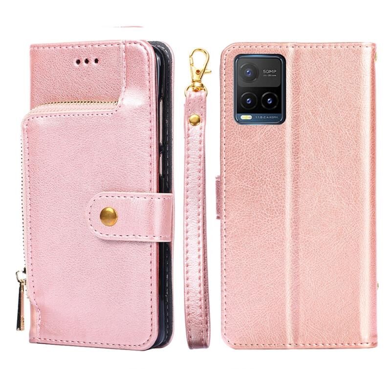 Για vivo Y21/Y21s/Y33s φερμουάρ τσάντα PU + TPU οριζόντια Flip δέρμα τηλέφωνο υπόθεση (Rose Gold)