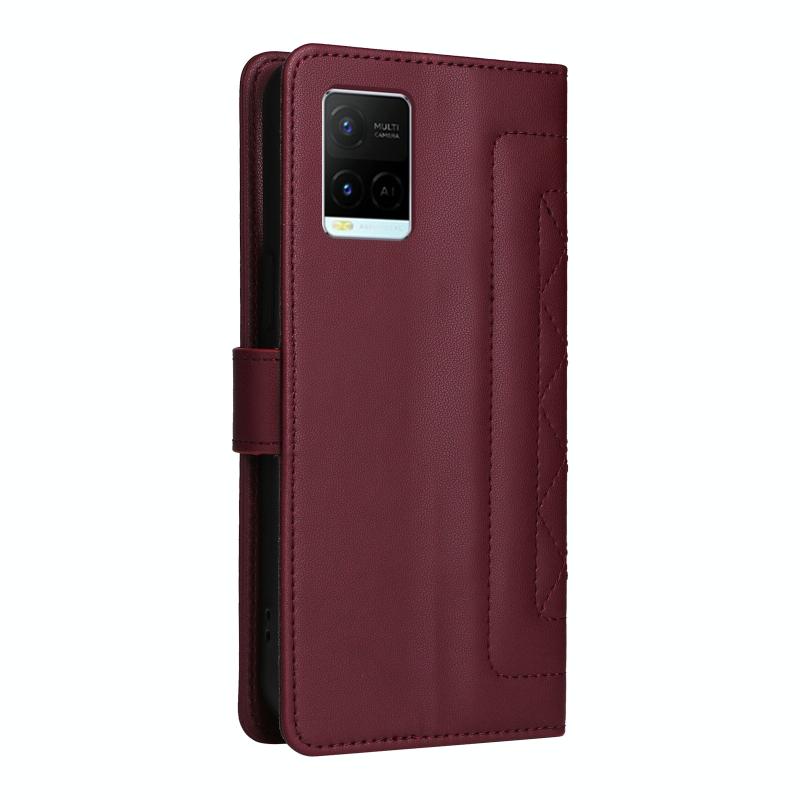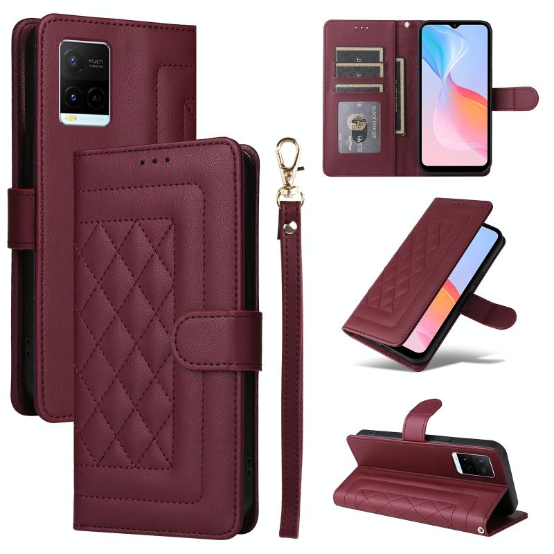 For vivo Y21 / Y33s Diamond Lattice Leather Flip Phone Case(Wine Red)