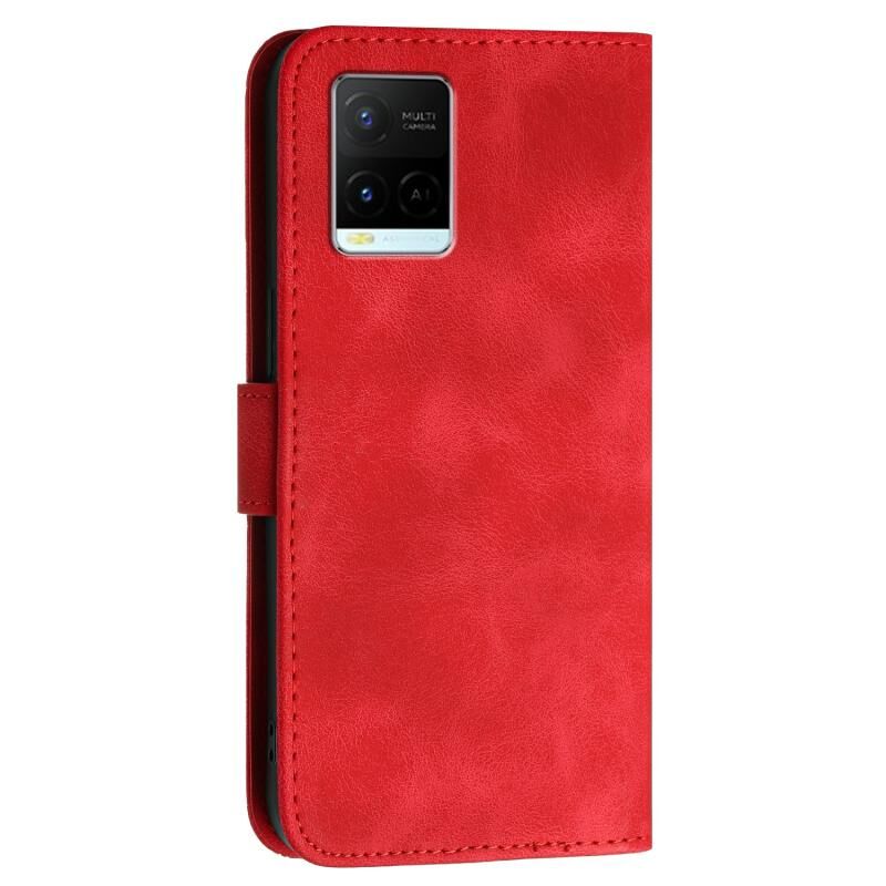 Θήκη τηλεφώνου δερμάτινη με ανάγλυφο σχέδιο πλέγματος και πεταλούδας για vivo Y21 / Y33s / Y21s με κορδόνι (Σκούρο Μπλε)