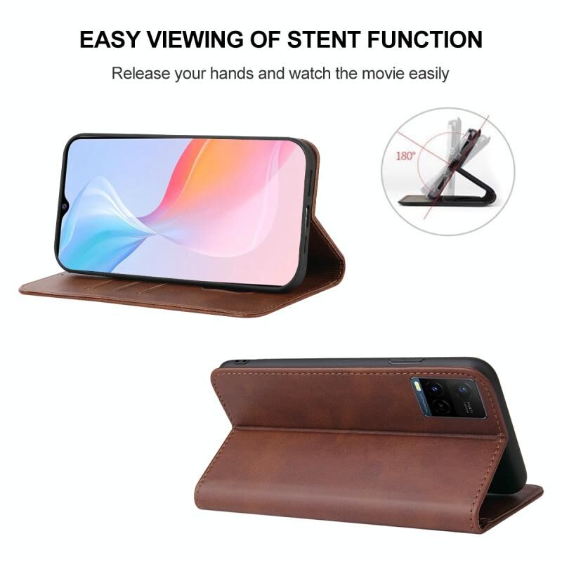 Θήκη τηλεφώνου δερμάτινη με μαγνητικό κλείσιμο για vivo Y21e (Καφέ)