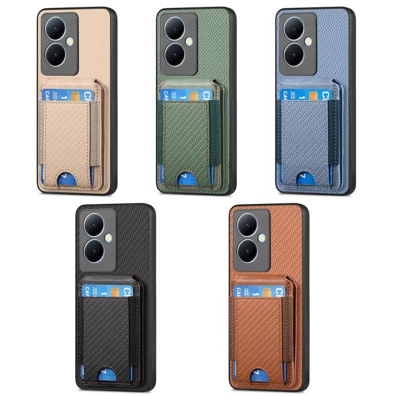 Θήκη τηλεφώνου για vivo Y21s Carbon Fiber, κάθετη, τύπου πορτοφολιού με βάση στήριξης (Μπλε)