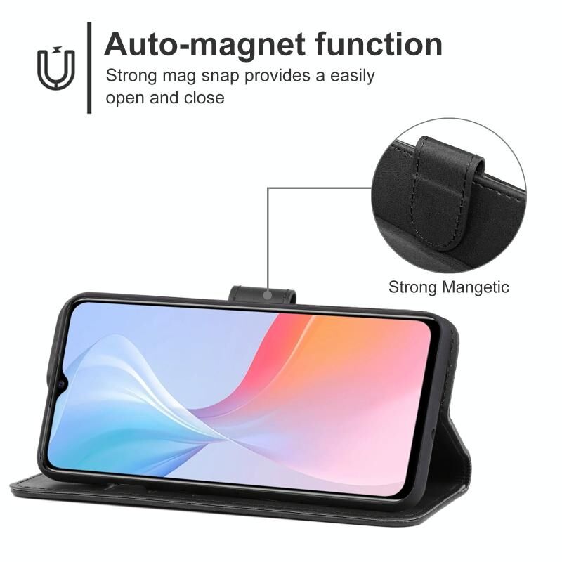 Θήκη τηλεφώνου από δέρμα για vivo Y21s (Μαύρο)