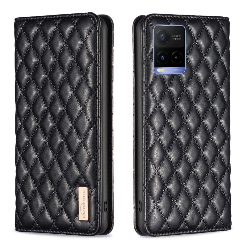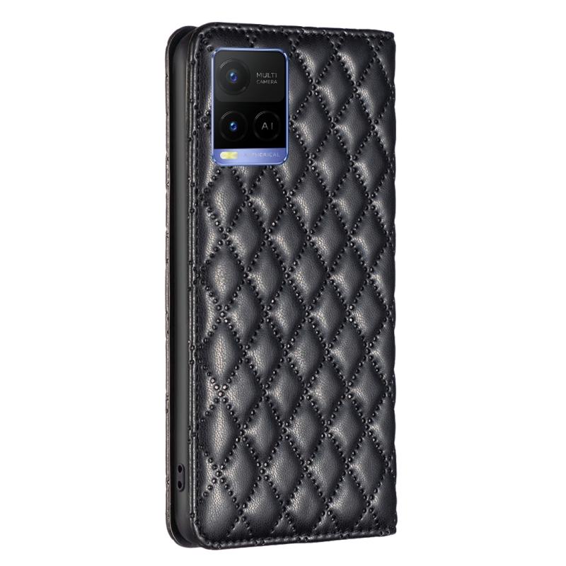 Θήκη τηλεφώνου τύπου flip από δέρμα με μαγνητικό σχέδιο διαμαντένιας πλέγματος για vivo Y21s / Y21 / Y33s (Μαύρο)