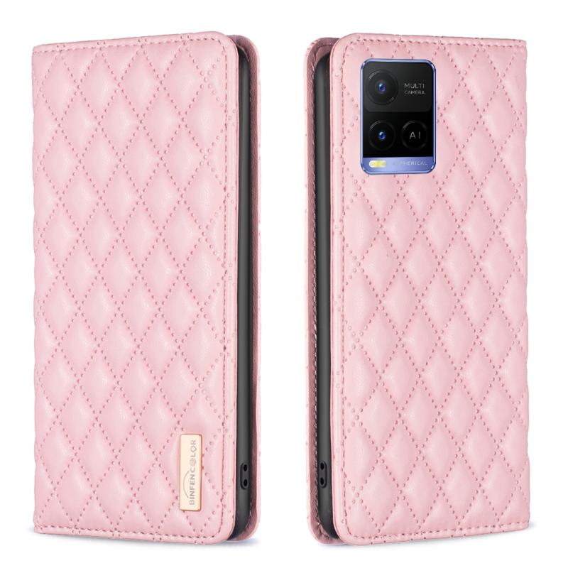 Θήκη τηλεφώνου τύπου flip από δέρμα με μαγνητικό σχέδιο διαμαντένιας πλέγματος για vivo Y21s / Y21 / Y33s (Μαύρο)
