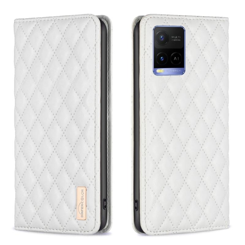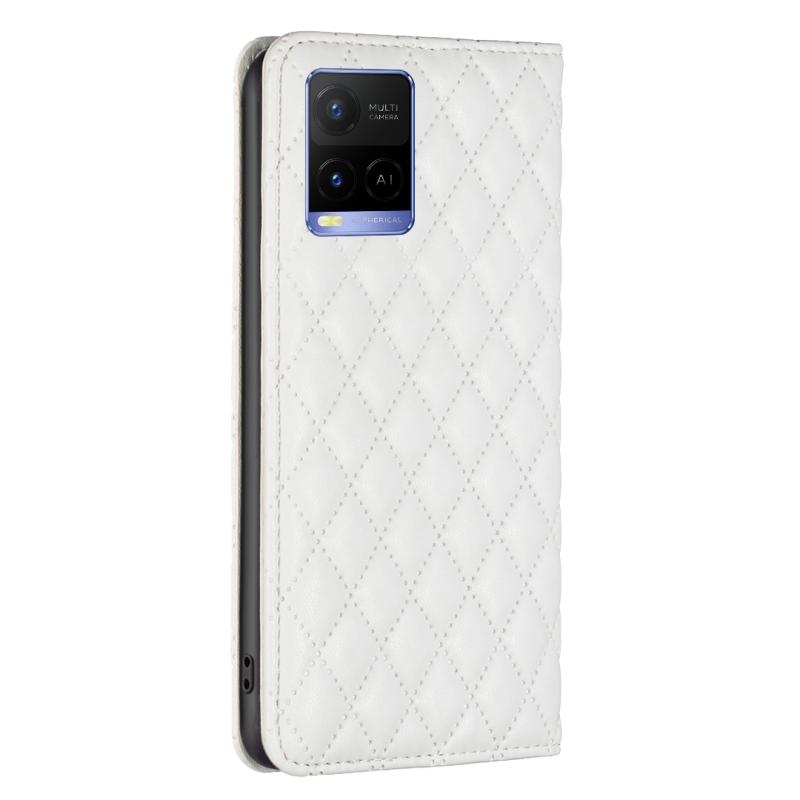 Θήκη τηλεφώνου τύπου flip από δέρμα με μαγνητικό σχέδιο διαμαντένιας πλέγματος για vivo Y21s / Y21 / Y33s (Μαύρο)