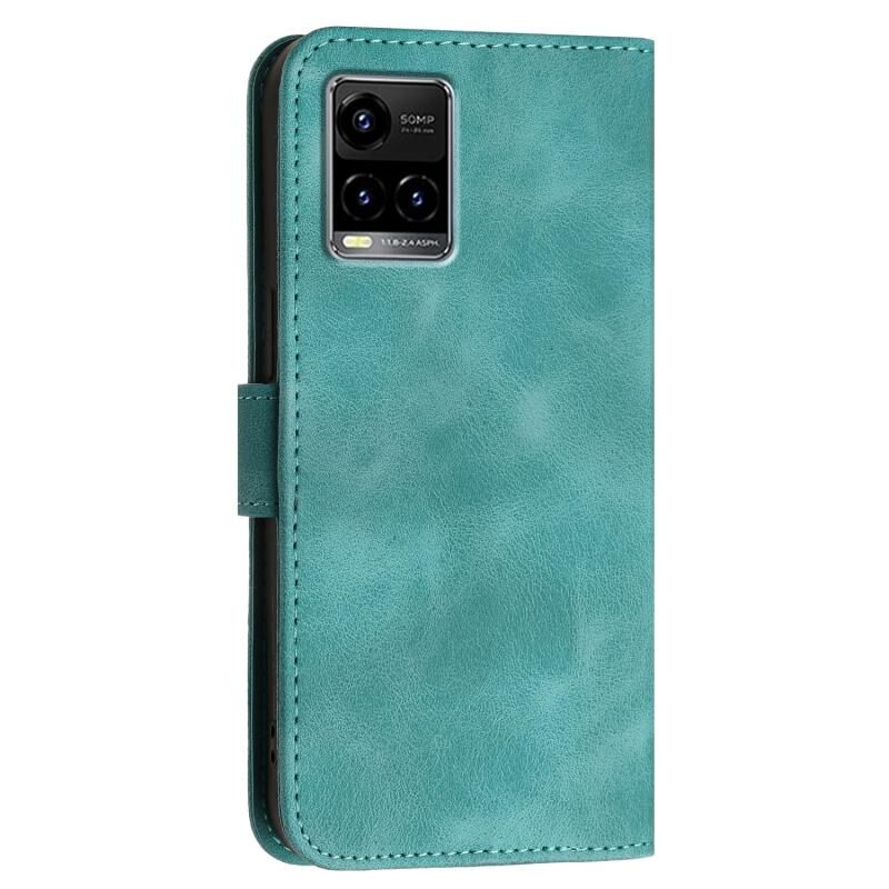 Θήκη τηλεφώνου δερμάτινη με ανάγλυφο σχέδιο πλέγματος και πεταλούδας για vivo Y21s / Y21t με κορδόνι (Ανοιχτό μπλε)