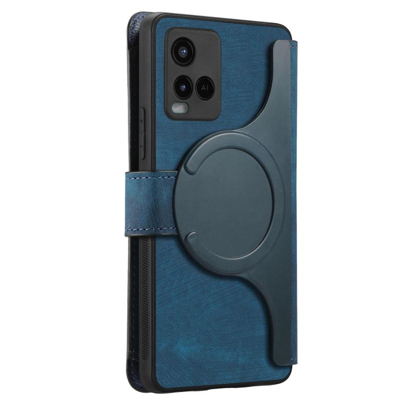 For vivo Y21s / Y32 / Y21 2021 CaseNeo MagSafe RFID Anti-theft Zipper Wallet Retro Leather Phone Case(Blue) (CaseNeo)