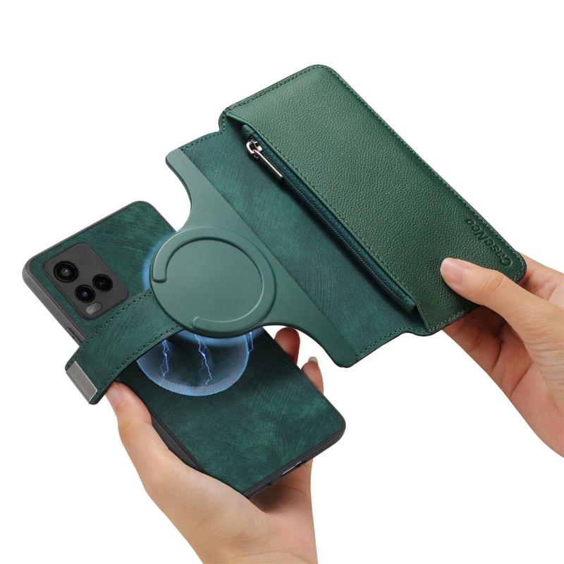 For vivo Y21s / Y32 / Y21 2021 CaseNeo MagSafe RFID Anti-theft Zipper Wallet Retro Leather Phone Case(Green) (CaseNeo)