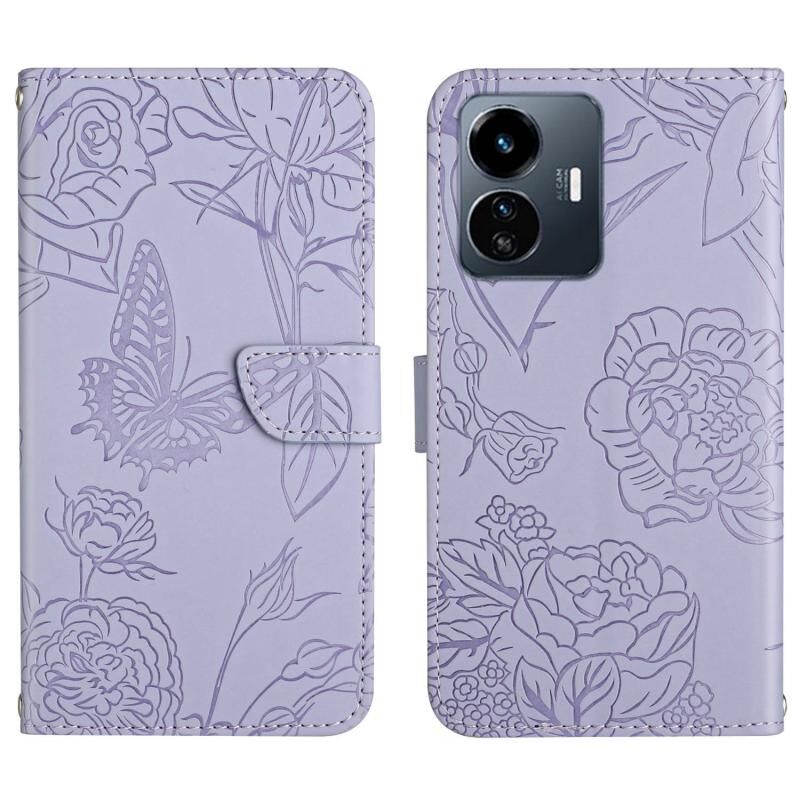 Θήκη τηλεφώνου από δέρμα με ανάγλυφο σχέδιο πεταλούδας, τύπου flip, για vivo Y22 4G Global / Y35 4G Global HT03 (Μωβ)