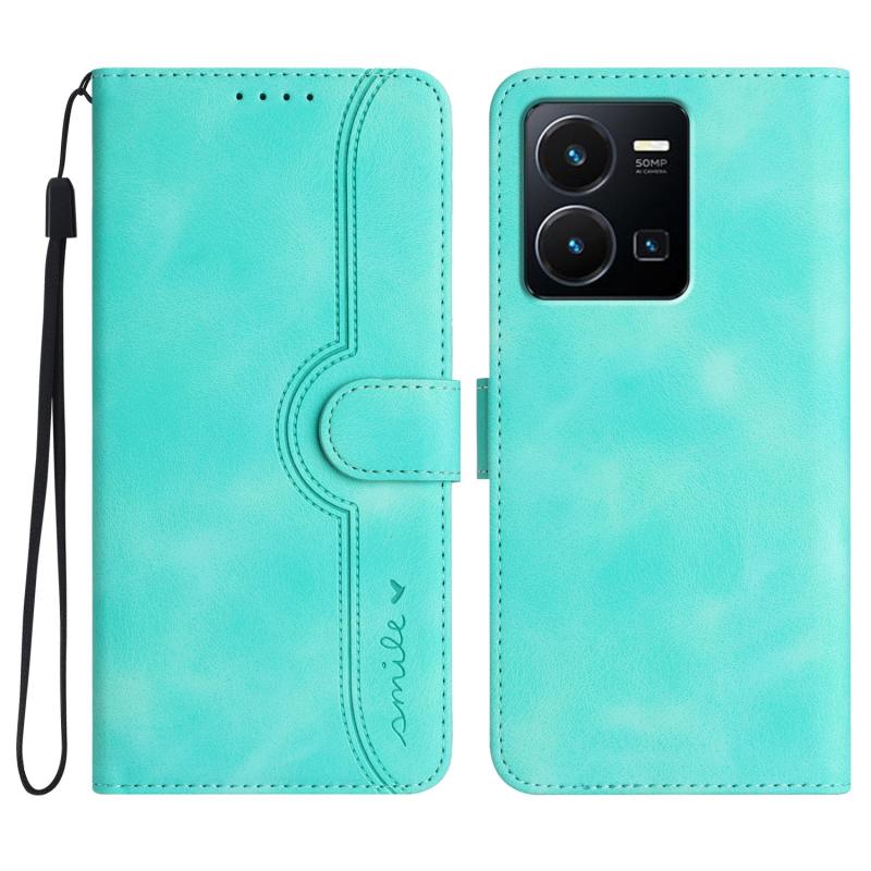 Θήκη τηλεφώνου από δέρμα με υφή καρδιάς για vivo Y22 4G Global/Y77 5G Global (Ανοιχτό μπλε)