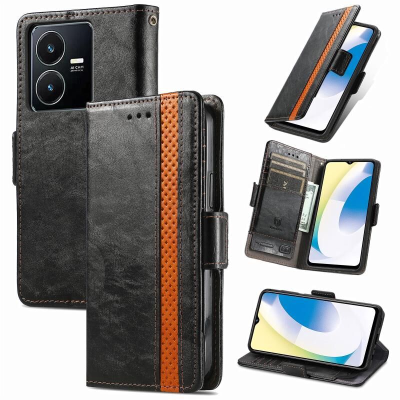 Για vivo Y22 CaseNeo Splicing Διπλή μαγνητική πόρπη δερμάτινη θήκη τηλεφώνου (Μαύρο)