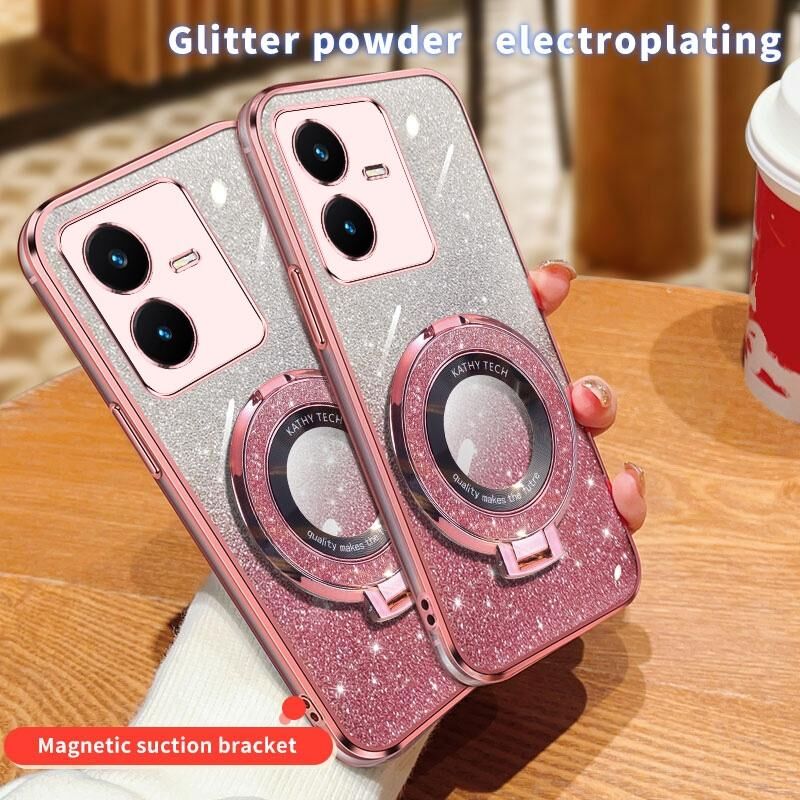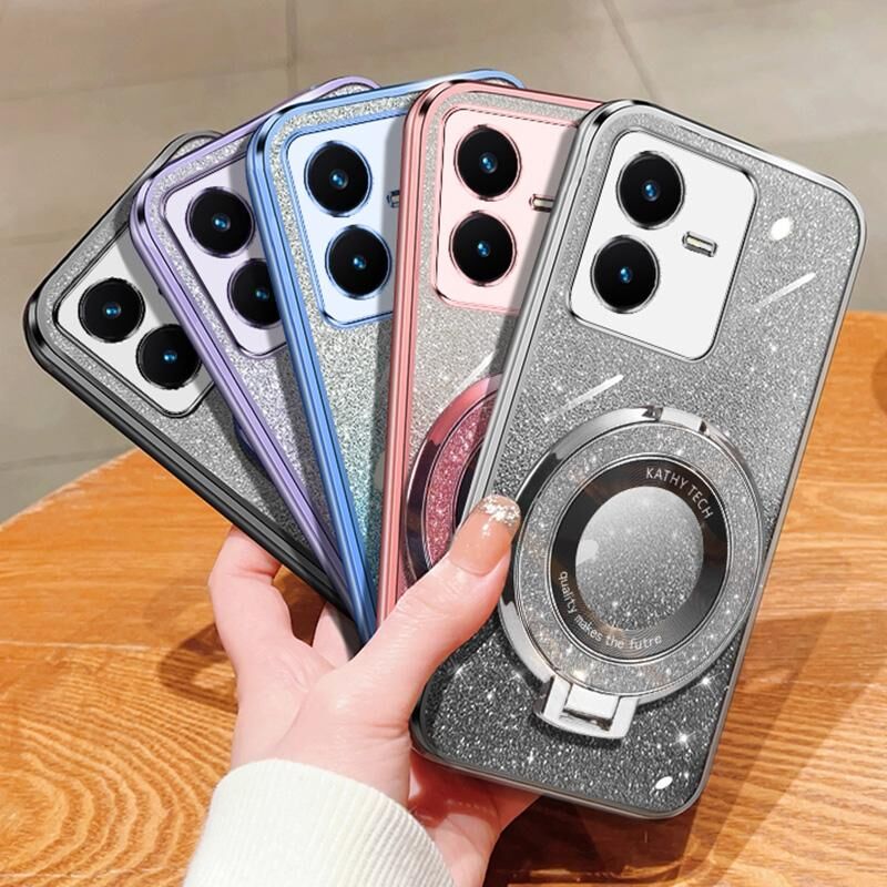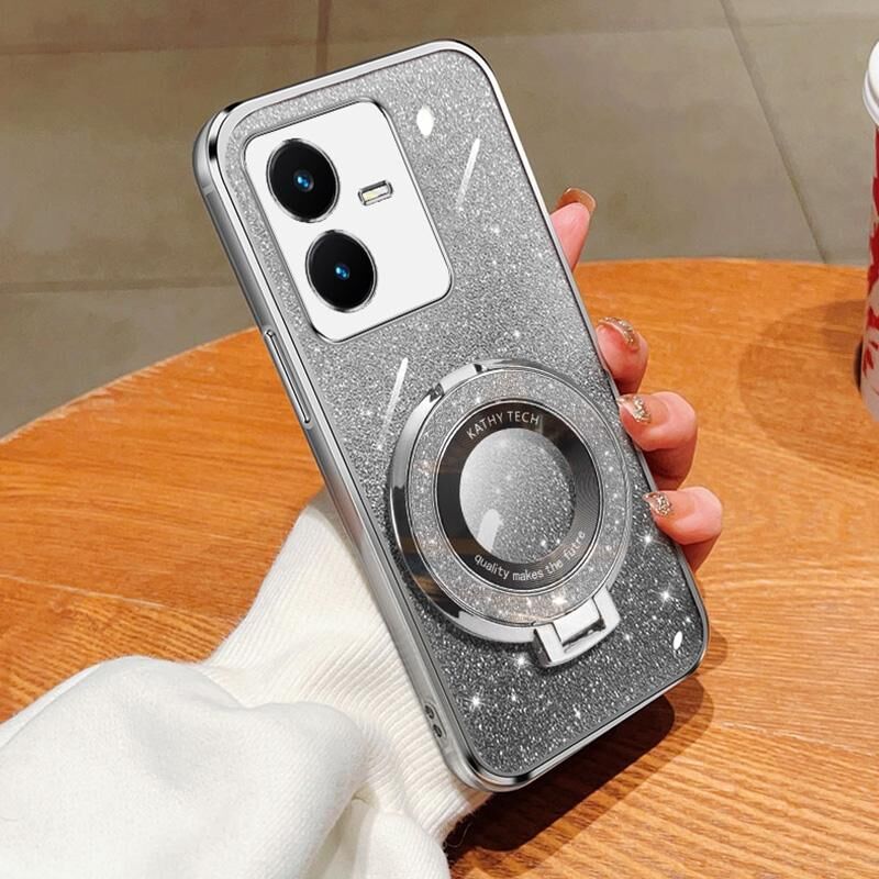 Θήκη κινητού τηλεφώνου TPU με στρογγυλό στήριγμα, επιμετάλλωση διαβαθμισμένης λάμψης για vivo Y22 / Y22s (Ασημί)