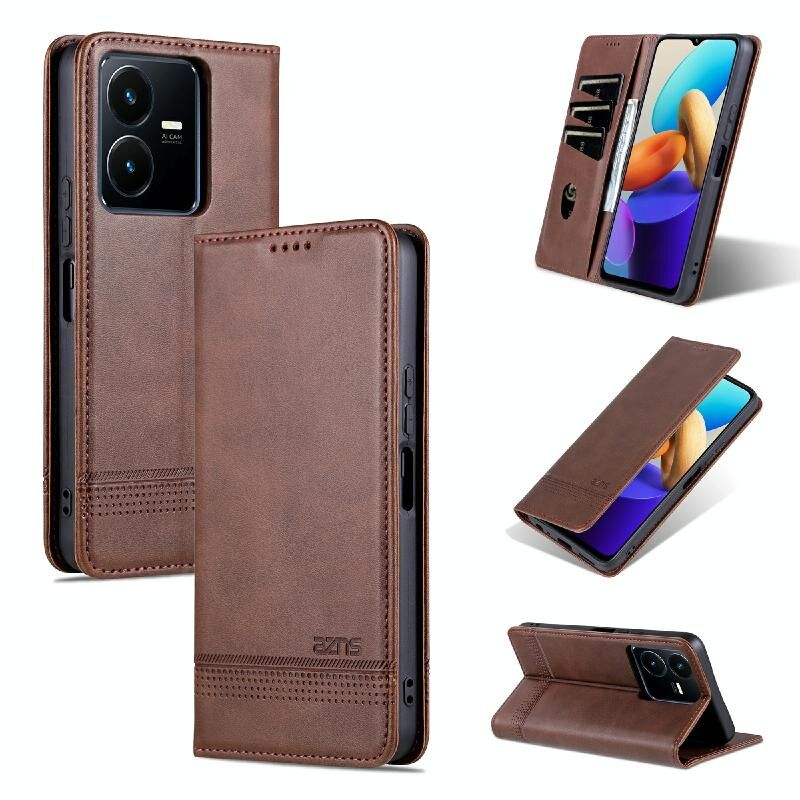 Για vivo Y22/Y22s/Y35 4G Μαγνητική θήκη τηλεφώνου από δέρμα με υφή μοσχαριού (σκούρο καφέ) (Σκούρο καφέ)
