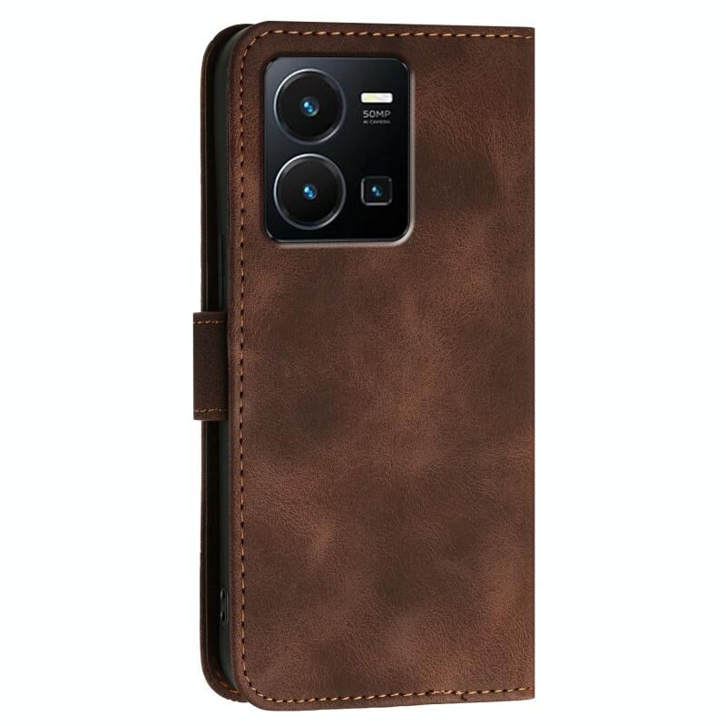 Θήκη τηλεφώνου δερμάτινη με ανάγλυφο σχέδιο πεταλούδας και κορδόνι για vivo Y22s 4G Global Grid (Καφέ)