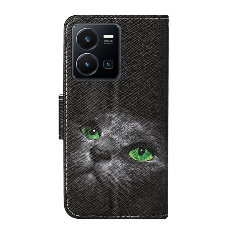 Θήκη τηλεφώνου δερμάτινη με σχέδιο πολύχρωμης ζωγραφικής για vivo Y22s (Μαύρο Πεντάγραμμο)