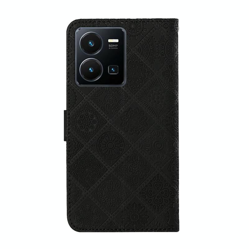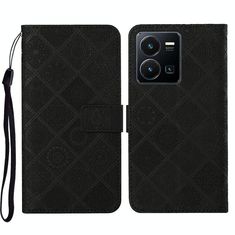 Θήκη τηλεφώνου δερμάτινη με ανάγλυφο σχέδιο εθνοτικού στυλ για vivo Y22s (Λευκό)