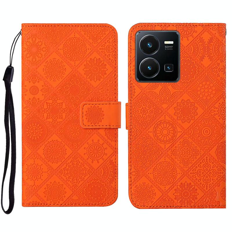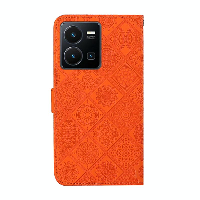 Θήκη τηλεφώνου δερμάτινη με ανάγλυφο σχέδιο εθνοτικού στυλ για vivo Y22s (Πορτοκαλί)