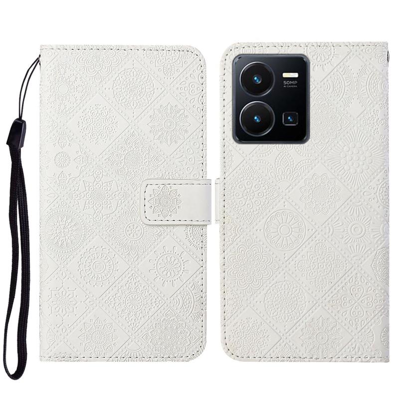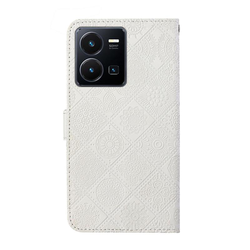 Θήκη τηλεφώνου δερμάτινη με ανάγλυφο σχέδιο εθνοτικού στυλ για vivo Y22s (Λευκό)