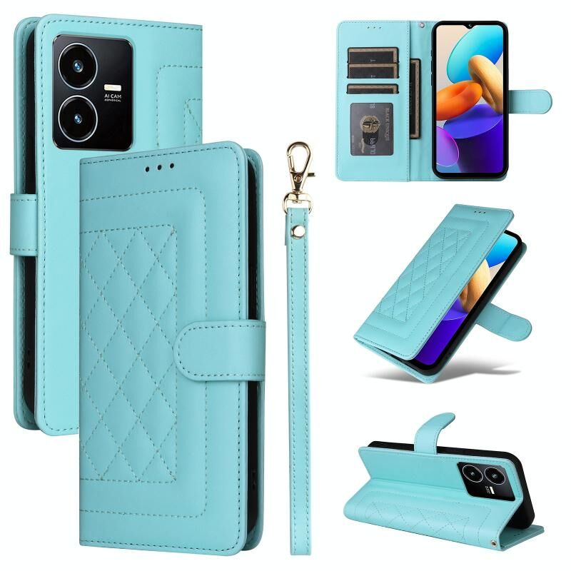 For vivo Y22s / Y35 Diamond Lattice Leather Flip Phone Case(Mint Green)