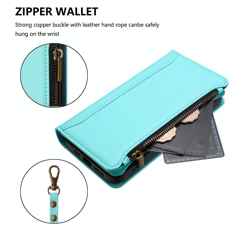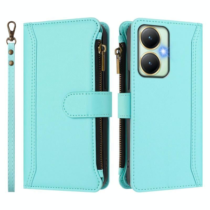 Θήκη δέρματος με μαγνητικό κλείσιμο, 9 θέσεις για κάρτες και φερμουάρ για vivo Y27 4G 2023, με λουρί χειρός (Μαύρο)