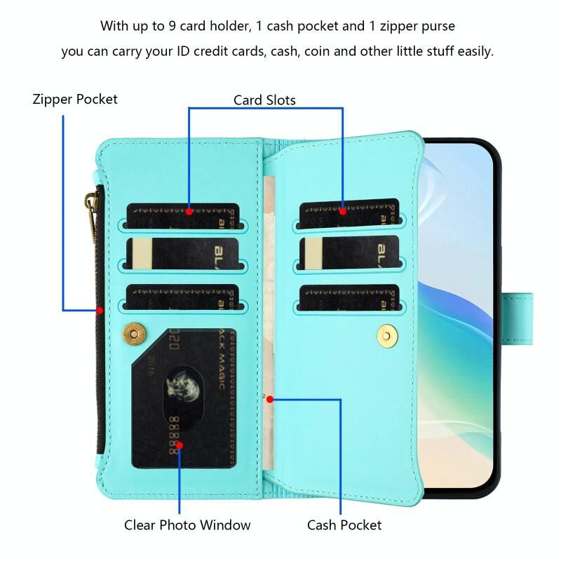 3. Εξοπλισμένο με εννέα υποδοχές καρτών και μία θήκη για χρήματα, για να αποθηκεύετε τακτοποιημένα πιστωτικές κάρτες, ταυτότητες και χαρτονομίσματα, εξασφαλίζοντας οργάνωση και προσβασιμότητα.