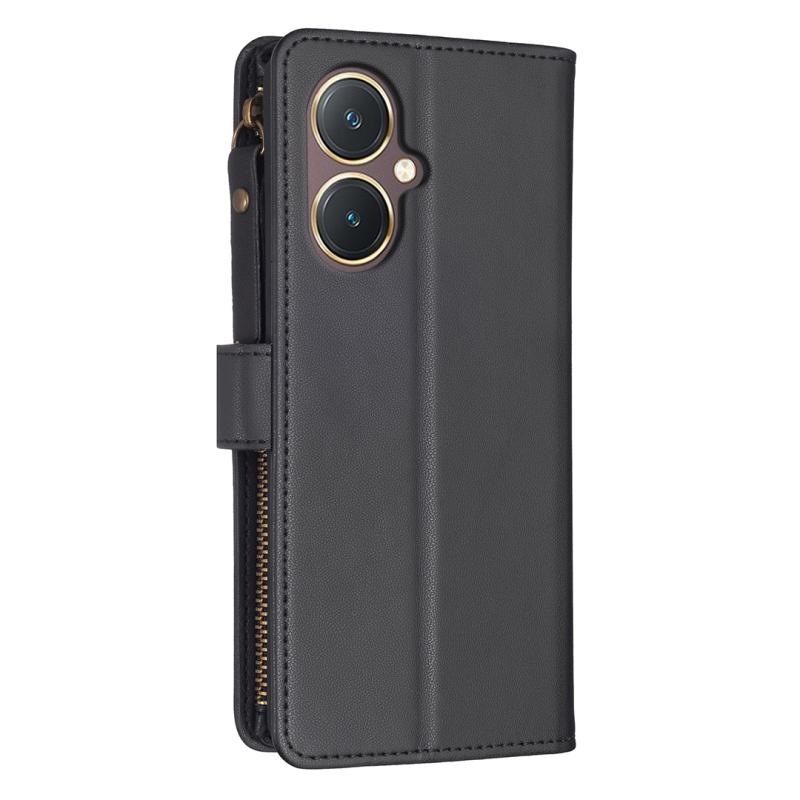 Για vivo Y27 4G, Θήκη τηλεφώνου με δερμάτινο φλιπ, με φερμουάρ και 9 θήκες για κάρτες (Μαύρο)