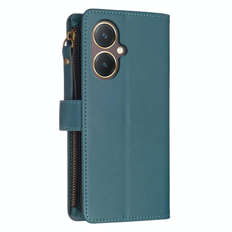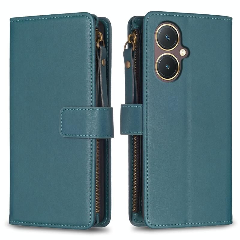 Για vivo Y27 4G, Θήκη τηλεφώνου με δερμάτινο φλιπ, με φερμουάρ και 9 θήκες για κάρτες (πράσινο)