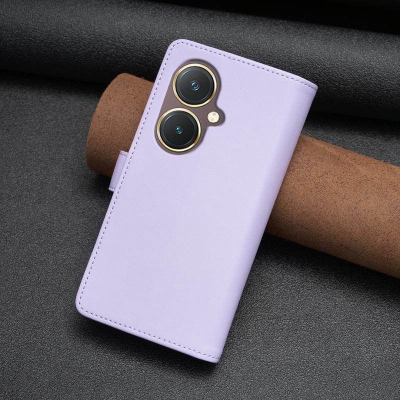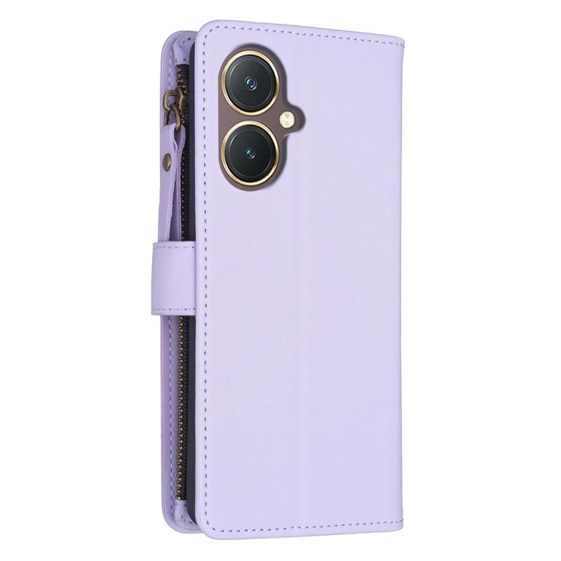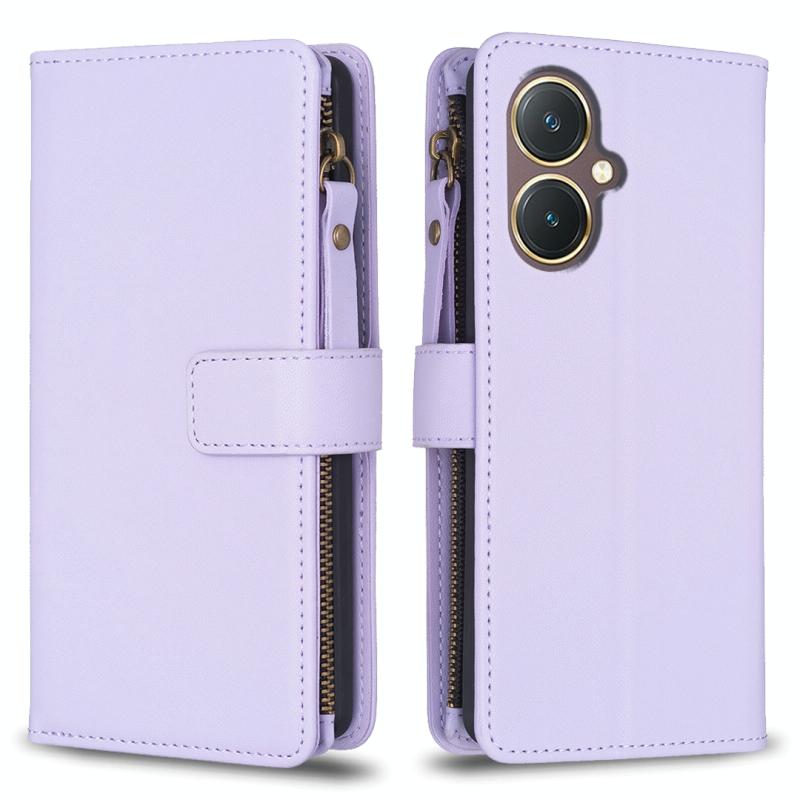 Για vivo Y27 4G, Θήκη τηλεφώνου με δερμάτινο φλιπ, με φερμουάρ και 9 θήκες για κάρτες (ανοιχτό μωβ)