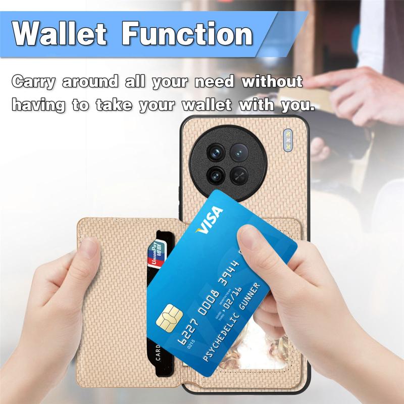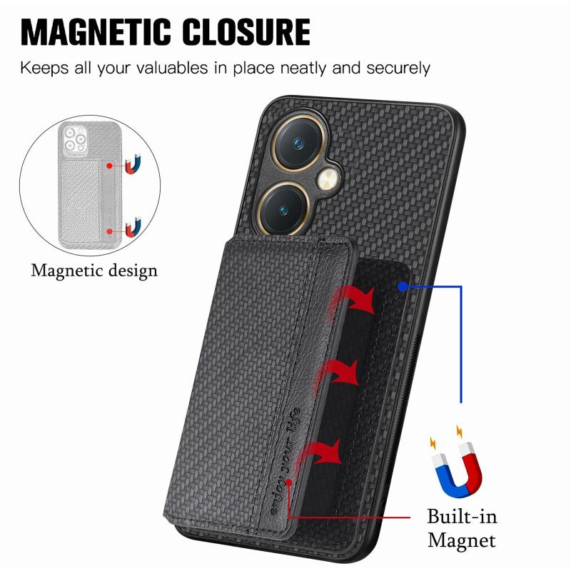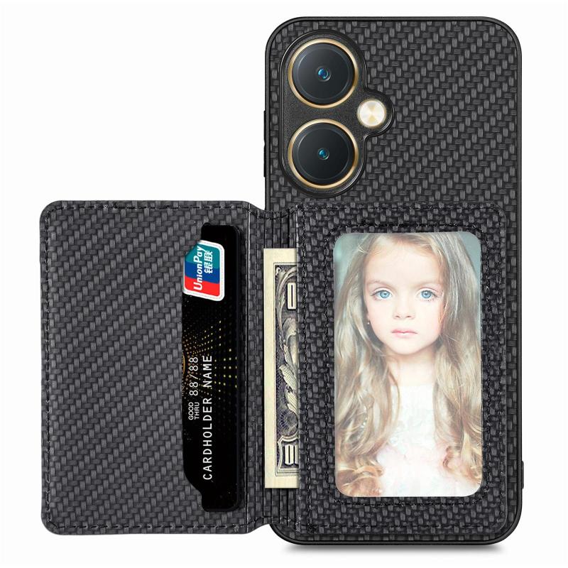 For vivo Y27 4G Carbon Fiber Magnetic Card Bag Phone Case(Black)