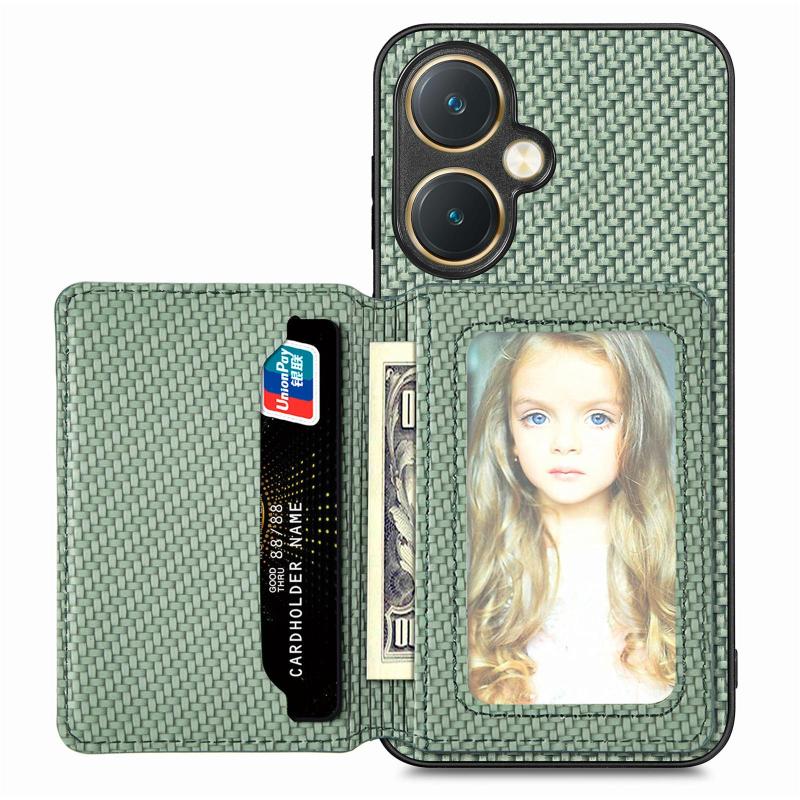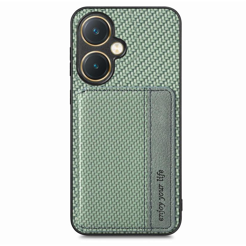 For vivo Y27 4G Carbon Fiber Magnetic Card Bag Phone Case(Green)