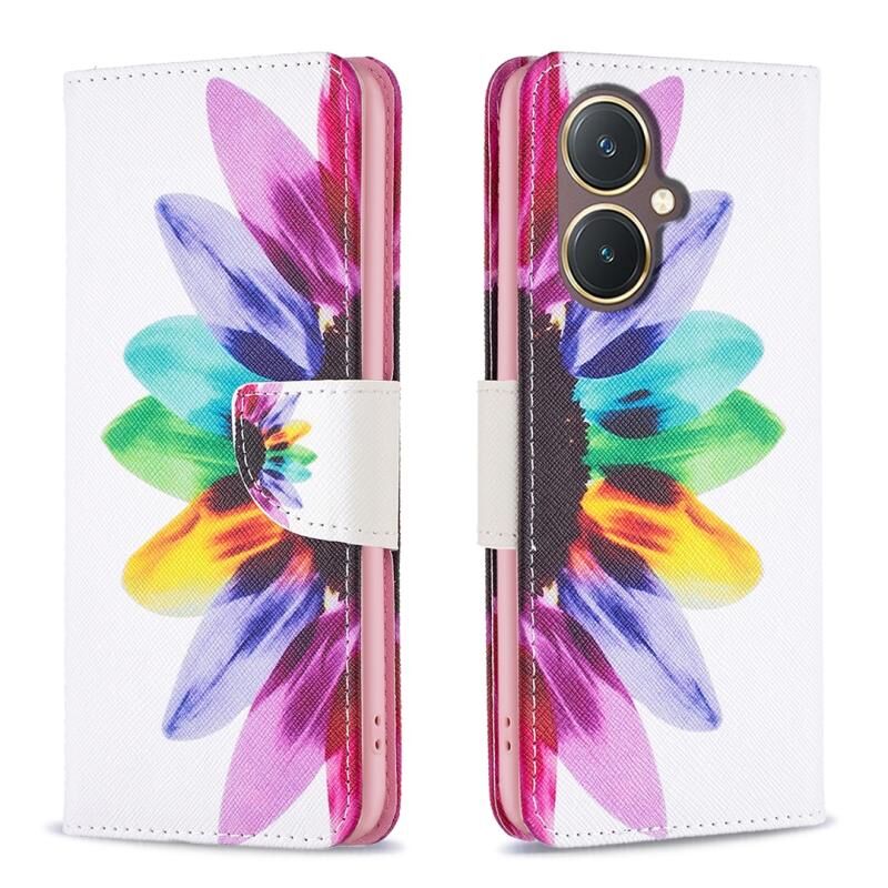 Θήκη τηλεφώνου από δέρμα με έγχρωμο σχέδιο για vivo Y27 4G (Ηλιάνθος)