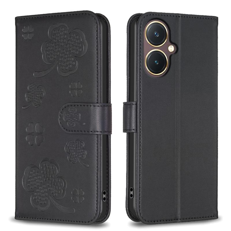 For vivo Y27 4G Four-leaf Embossed Leather Phone Case(Black)