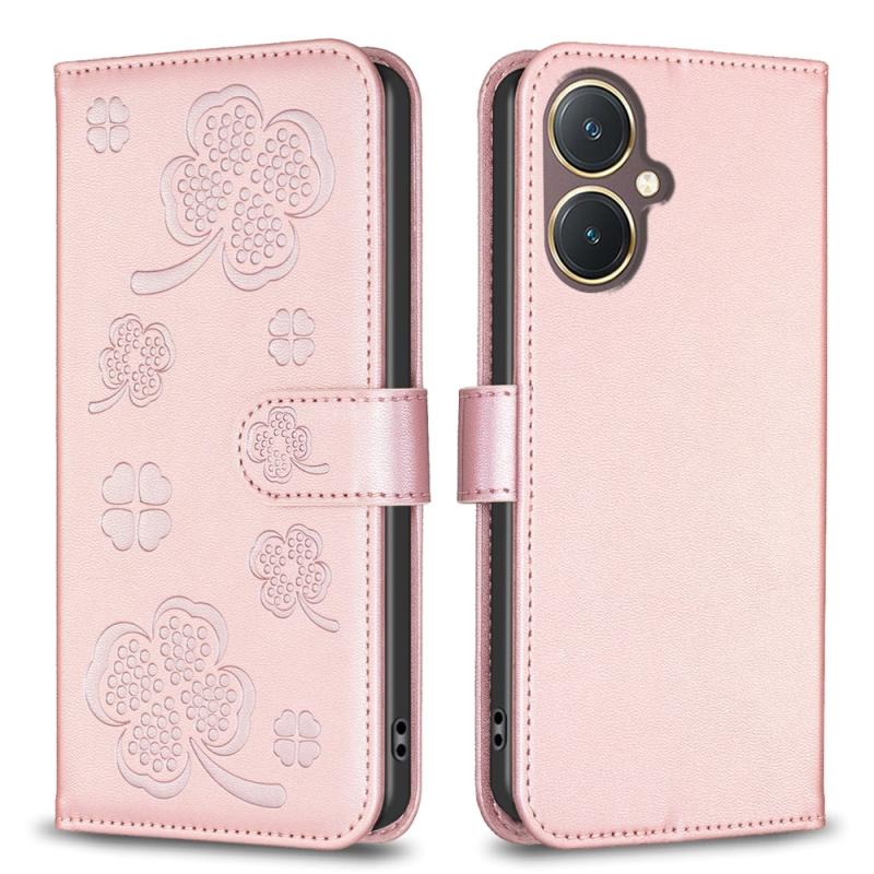For vivo Y27 4G Four-leaf Embossed Leather Phone Case(Pink)