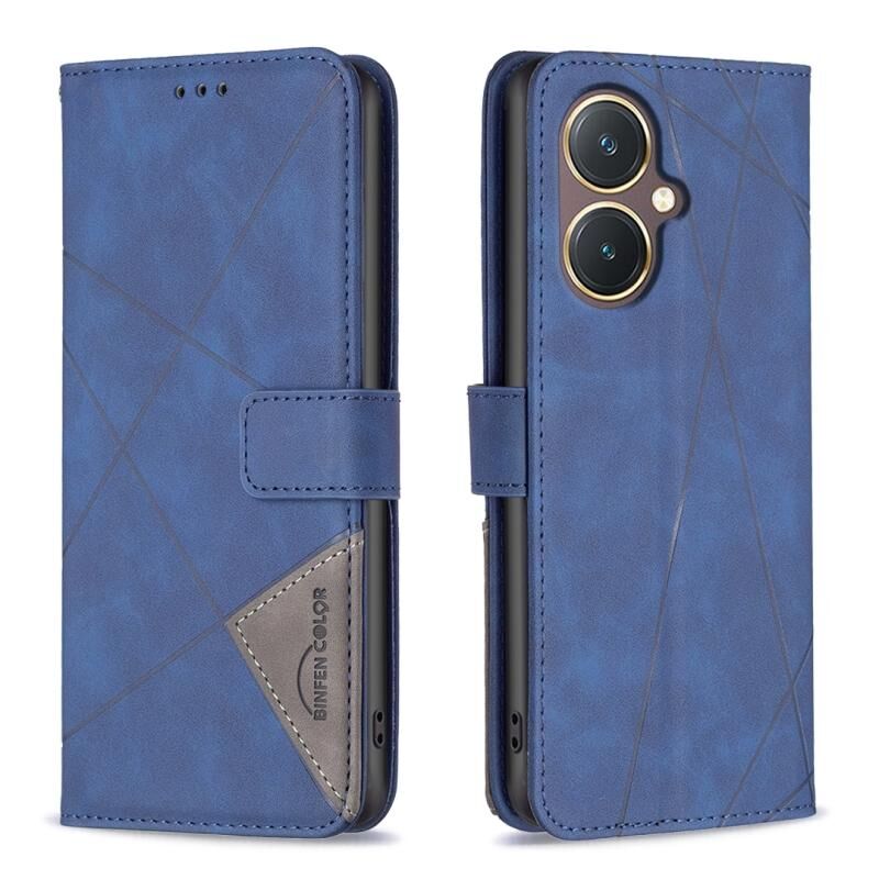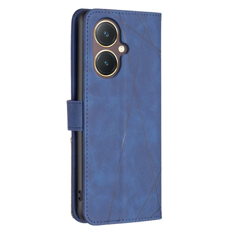 Θήκη τηλεφώνου δερμάτινη με μαγνητικό κούμπωμα και υφή ρόμβου για vivo Y27 4G (Μαύρο)