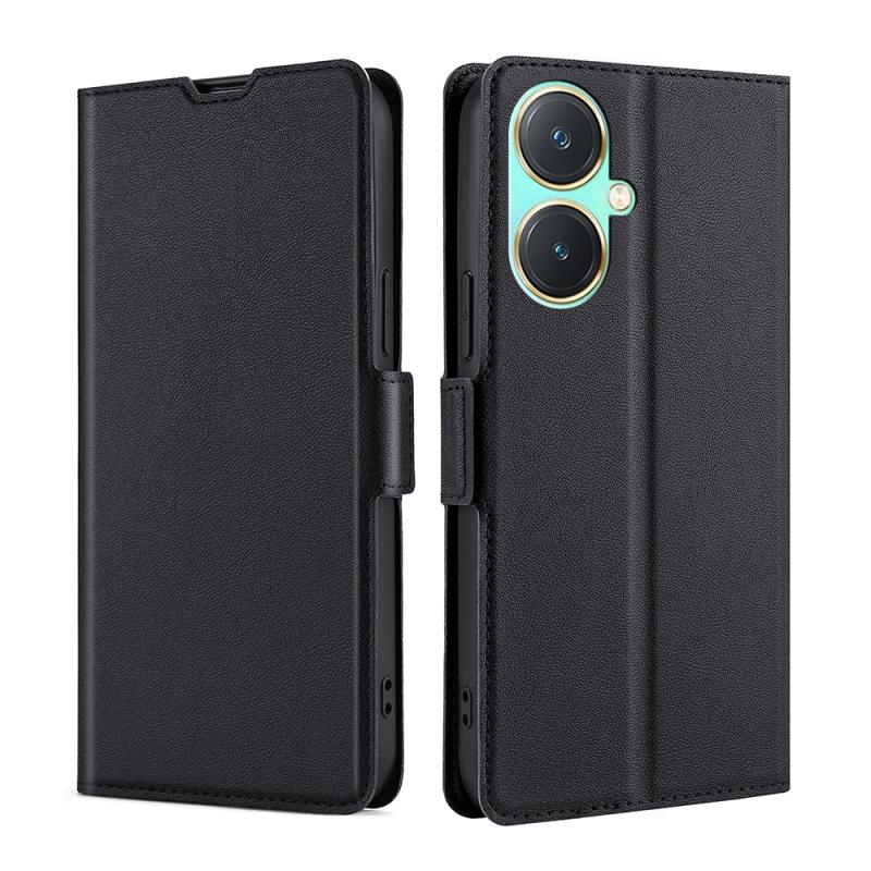 Θήκη τηλεφώνου δερμάτινη, οριζόντια, αναδιπλούμενη, με λεπτό σχεδιασμό και πλευρική αγκράφα για vivo Y27 4G (Μαύρο)