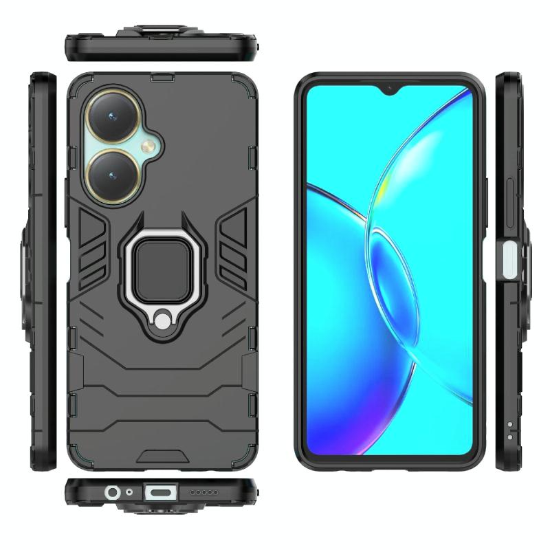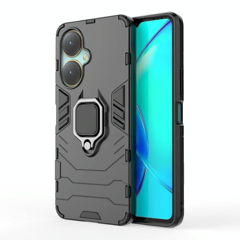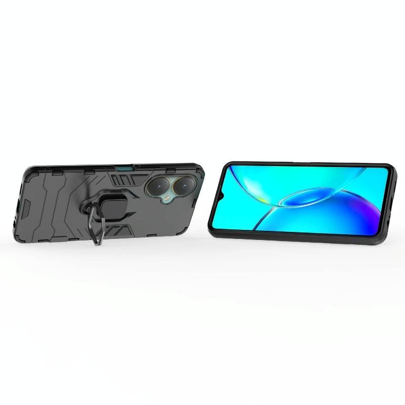 For vivo Y27 4G/Y35+ Shockproof PC + TPU Holder Phone Case(Black)