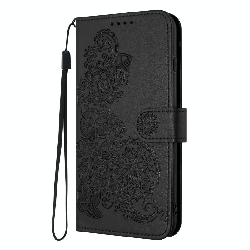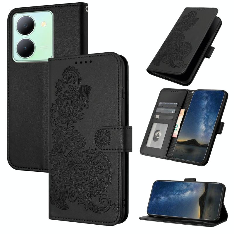 For vivo Y27s 4G Global Datura Flower Embossed Flip Leather Phone Case(Black)
