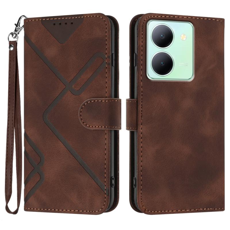 For vivo Y27s 4G Global Line Pattern Skin Feel Leather Phone Case(Coffee)