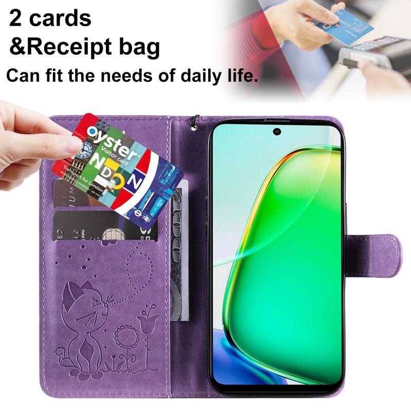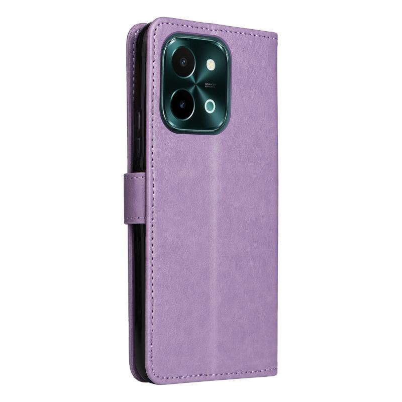 For vivo Y28 4G Cat and Bee Embossed Flip Leather Phone Case(Purple)