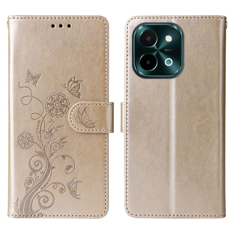 For vivo Y28 4G Embossed Butterfly Flowers Leather Phone Case(Gold)