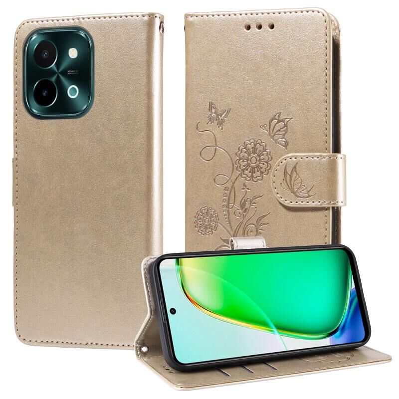 Θήκη τηλεφώνου δερμάτινη με ανάγλυφα λουλούδια και πεταλούδες για vivo Y28 4G (Μωβ)